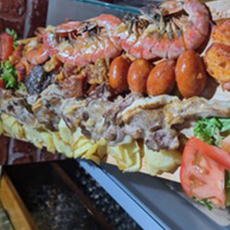 lechazo hecho Chuletillas ,Gambones, Torreznos, Morcilla, Choricillos, chipirones ,Patatas naturales y Ensalada.